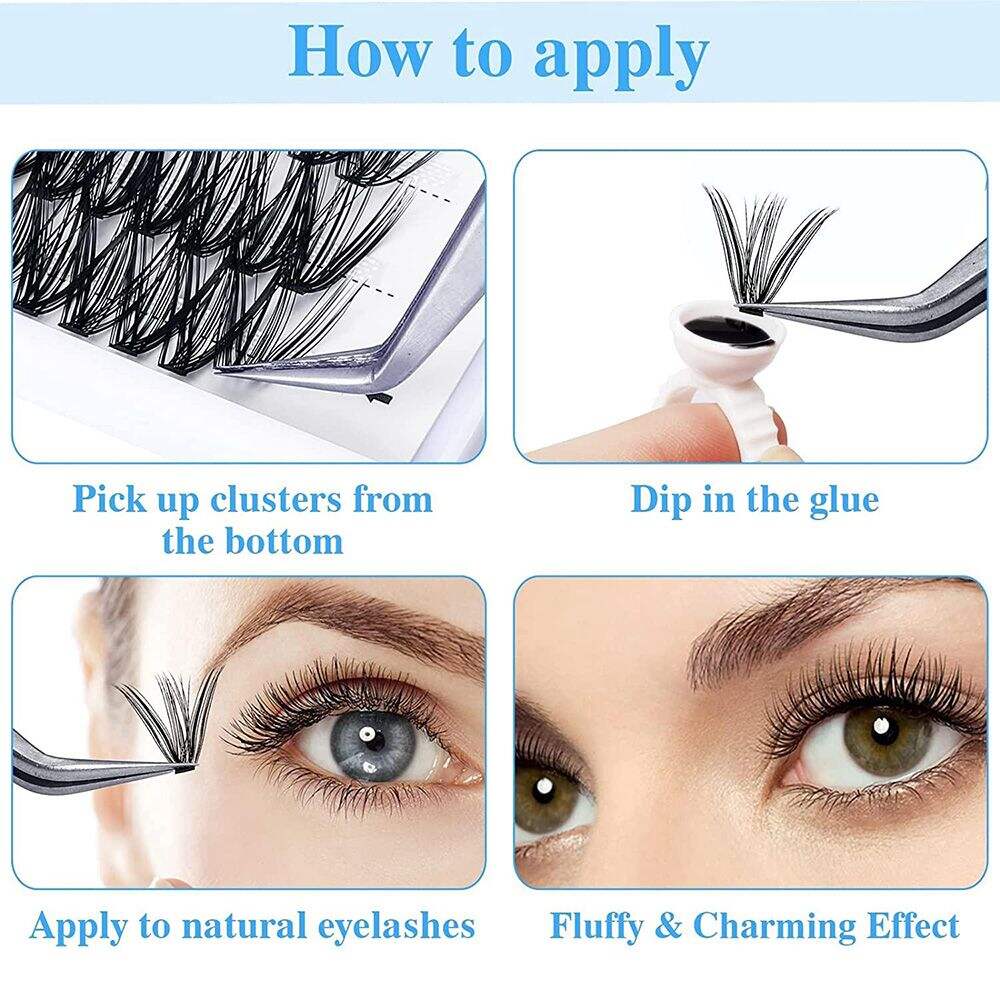 *Suitable To Wear: Use tweezer to pinch the band of cluster eyelashes and apply individual false eyelashes below natural lashes. You can barely feel the cluster wispies lashes. The bottom of clusters are flat and hardly noticeable. The lash band part will not stab your eyelid area when you blink. Bring you a perfect experience during lash application.