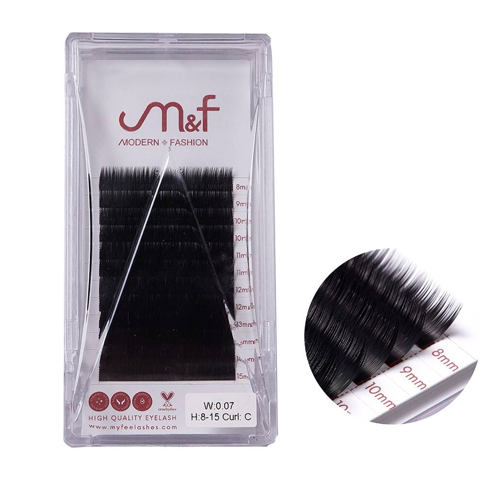 *The classic volume lash extension is made of high quality black PBT material, matte black with no blue tint; very soft, lightweight, natural, and comfortable to use. It is the best option for eyelash extensions.